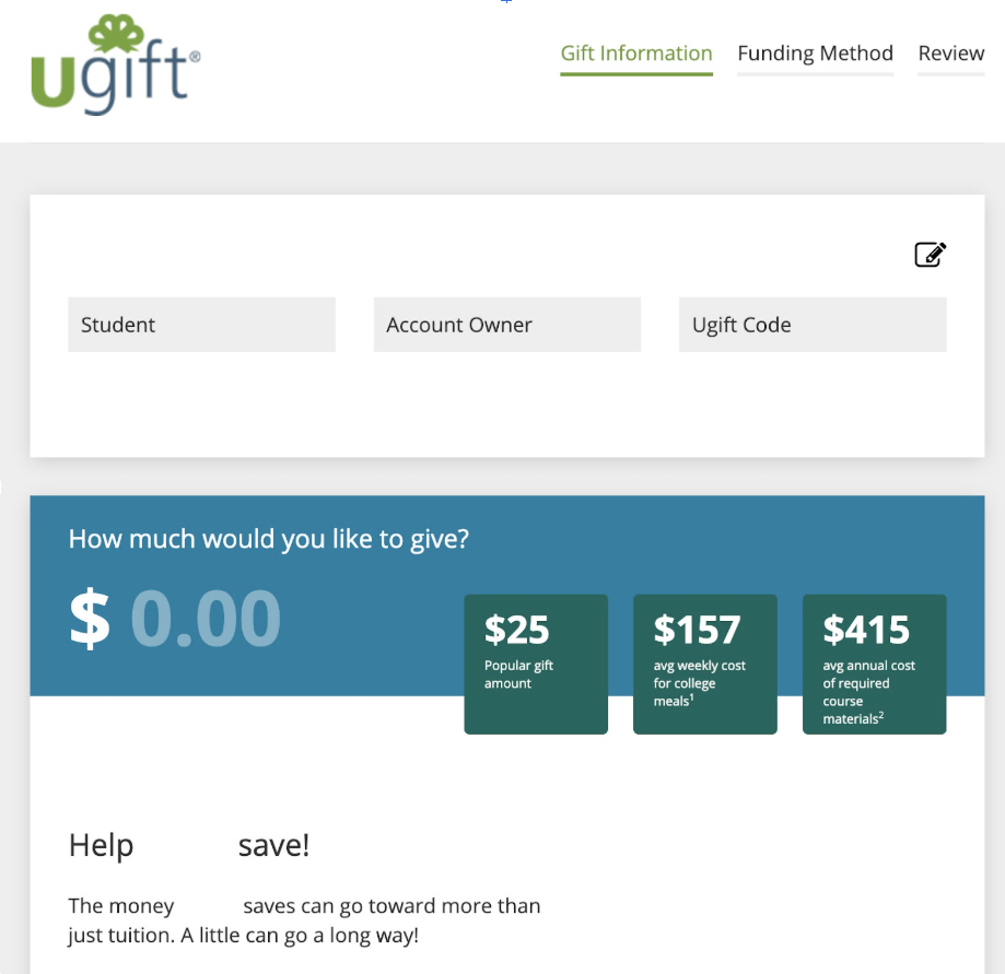 When a loved one is ready to make a gift, direct them to ugift529.com. They can enter the code you shared to make a contribution directly into the beneficiary’s account.